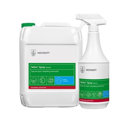 Zastosowanie: Velox® Top AF to alkoholowy płyn do mycia i szybkiej dezynfekcji małych powierzchni (fotele zabiegowe, stoły operacyjne, aparatura medyczna oraz końcówki stomatologiczne przed procesem sterylizacji). Przeznaczony również do stosowania w gastronomii, domach opieki, sanatoriach, salonach fitness i SPA, salonach fryzjerskich, kosmetycznych, gabinetach masażu, przedszkolach, szkołach oraz do dezynfekcji powierzchni mających kontakt z żywnością. Idealnie nadaje się do mycia i dezynfekcji małych i trudno dostępnych powierzchni takich jak blaty, stoły, klamki, uchwyty oraz do sprzętu i akcesoriów fryzjerskich i kosmetycznych. Produkt posiada działanie bakteriobójcze, drożdżakobójcze, bójcze wobec prątków gruźlicy i ograniczone wirusobójcze. Działa na wirusy Rota i Adeno.