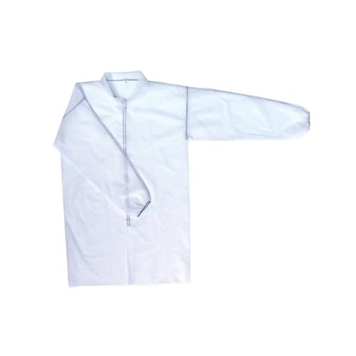 Fartuchy wykonane z włókniny polipropylenowej, szyte niebieską nitką, bez kieszeni i kołnierza. Wyposażone w 4 rzepy. Opakowaniem handlowym jest karton która zawiera 50szt.