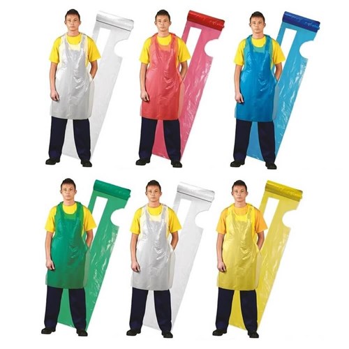 Fartuch ochronny FFOL-ROLL wykonany jest z folii polietylenowej. Można go szybko założyć, wkładając przez głowę i zawiązując z tyłu w talii, co gwarantuje wygodę użytkowania i swobodę ruchów. Fartuch skutecznie ochrania przed zabrudzeniem i wilgocią. Stosowany jako dodatkowa warstwa ochronna odzieży w pracy. Fartuch foliowy na rolce dostępny jest w kolorach: żółty, zielony, transparentny, czerwony, biały lub niebieski. Uniwersalny rozmiar 117x70 cm, sięgającym za kolana. Fartuch przedni z folii polecany jest w przemyśle spożywczym, restauracjach, salonach fryzjerskich, placówkach służby zdrowia i opieki medycznej.