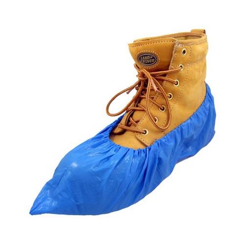 Ochraniacz na obuwie wykonany z niebieskiej folii LDPE.