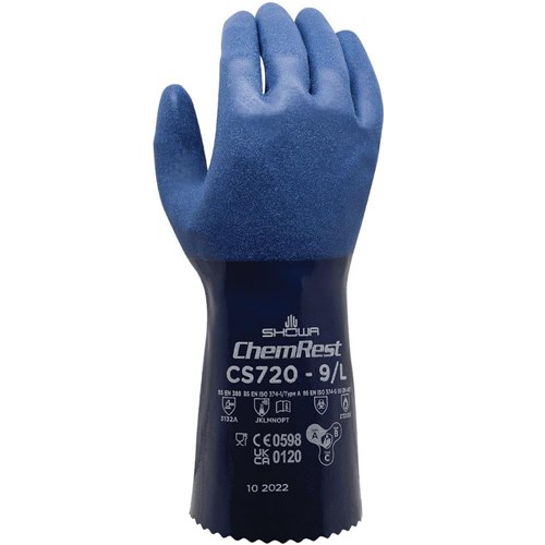 ChemRest CS720 to profesjonalne rękawice ochronne SHOWA klasy Cat III, zaprojektowane z myślą o wymagających zastosowaniach w branży chemicznej, spożywczej i przemysłowej.