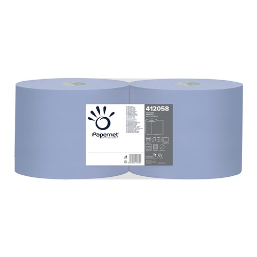 Papierowe czyściwo, dwuwarstwowe, niebieska makulatura, 360 mb w rolce Opakowanie zbiorcze i zarazem handlowe zawiera 2 rolki czyściwa