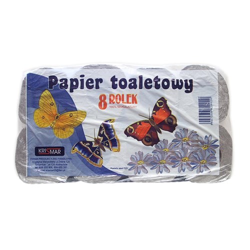 Klasyczny, makulaturowy papier toaletowy w małej rolce.