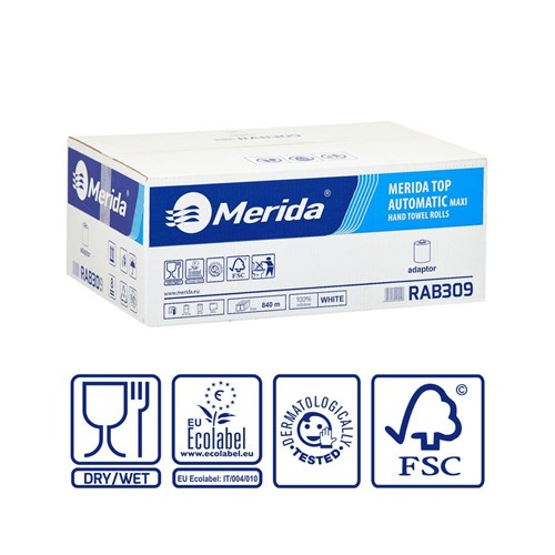 Ręcznik biały, celulozowy, dwuwarstwowy, system autocut Opakowanie handlowe zawiera 6 rolek