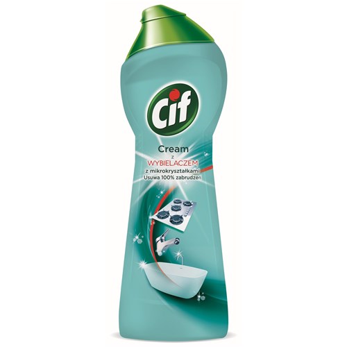 Mleczko z dodatkiem wybielacza do czyszczenia powierzchni w kuchni i łazience. Opakowanie zbiorcze zawiera 12 sztuk.