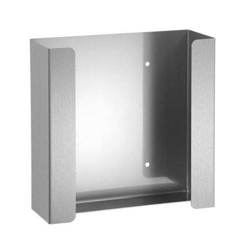 Dyspenser na dwa opakowania rękawic jednorazowych wykonany w całości ze stali nierdzewnej.