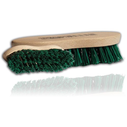 Szczotka do szorowania ręczna, z twardym włosiem nylonowym, w drewnianej oprawie.