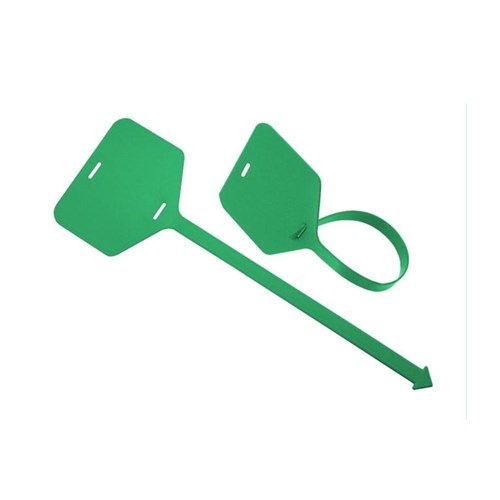 Etykiety o długości 25 cm wykonane z wykrywalnego polipropylenu (PP). Wielokrotnego użytku, przeznaczone do znakowania palet, kartonów, worków, zbiorników itp.