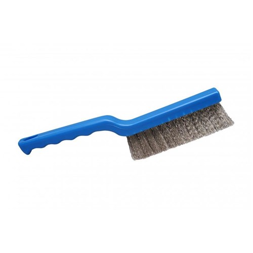 Szczotka do szczelin z włosiem ze stali nierdzewnej. Solidna i wytrzymała szczotka o wąskiej konstrukcji, pozwala na skuteczne usuwanie uporczywych zabrudzeń w miejscach o utrudnionym dostępie. Posiada wyjątkowo sztywne i twarde włosie ze stali nierd