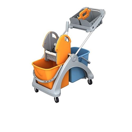 Wózek do mopowania dwuwiadrowy marki Splast z koszykiem hotelowym